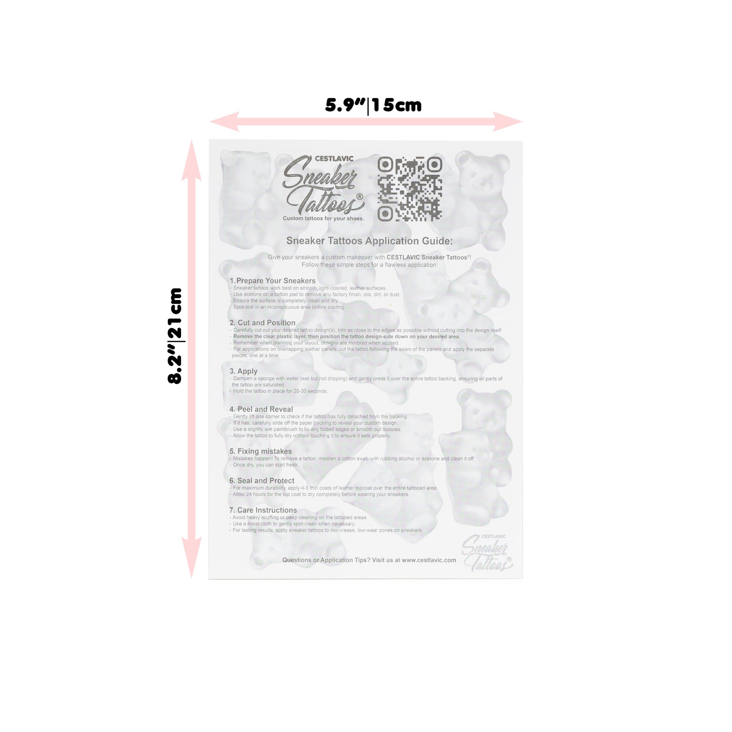 Each set of Sneaker Tattoos® comes with 4 sheets of stunning artwork specially designed for customizing. Instead of giving all duplicates, our designs are arranged/flipped so that when you're customizing the TWO sides of your sneakers, they can each be entirely unique.