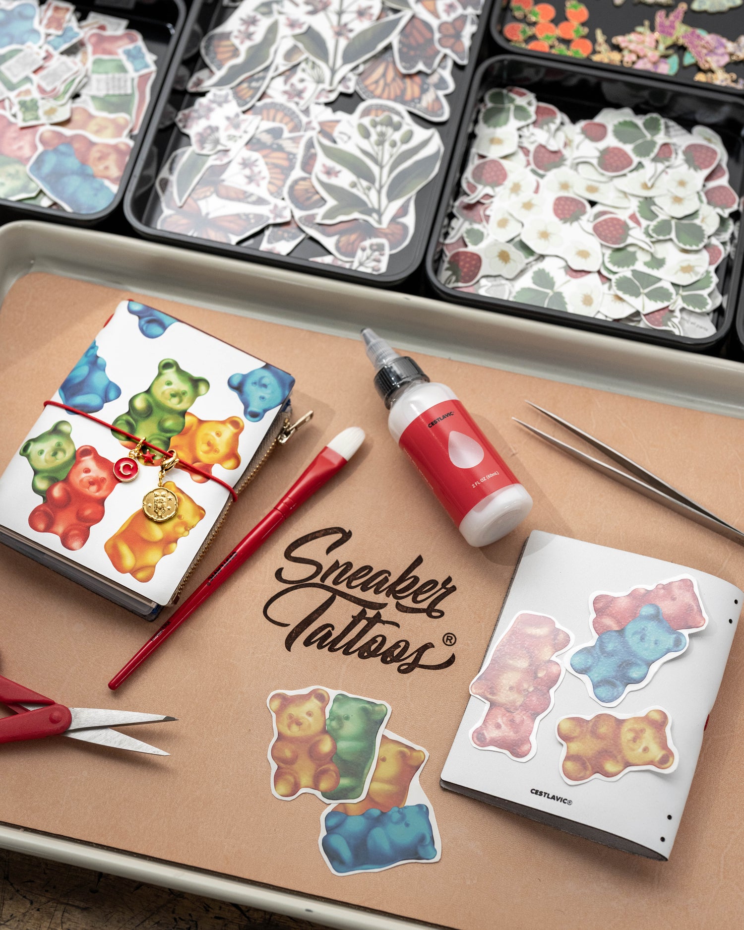Or I like to call it, my artist's notebook! We're holding our first in person workshop where you can customize your very own leather notebook cover with Sneaker Tattoos and charms. Join us for this 3 Hour workshop make your very special one-of-a-kind notebook.