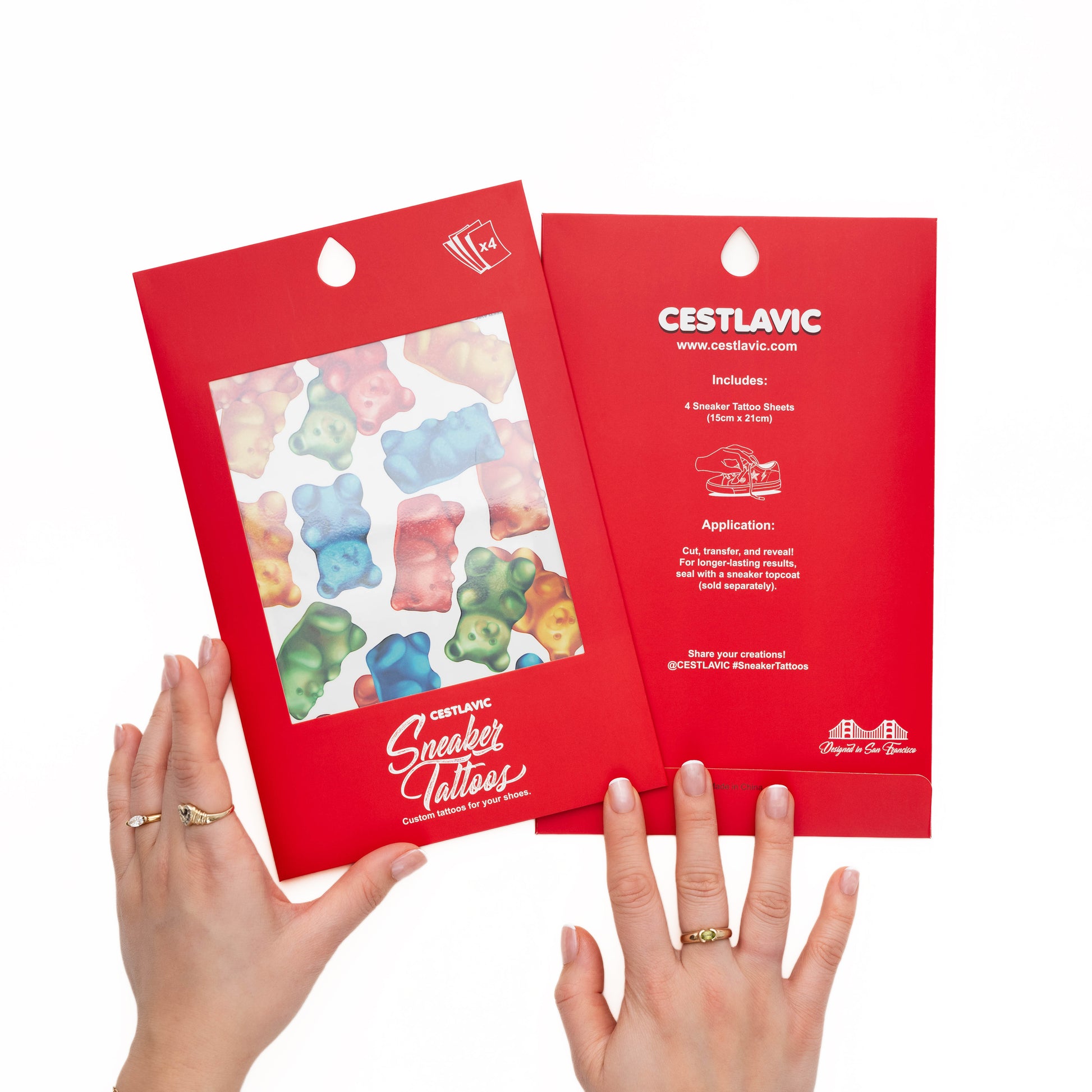 The magic in the Sneaker Tattoos® system is applying the Sneaker Topcoat (sold separately). Don't forget to pick that up before you check out!