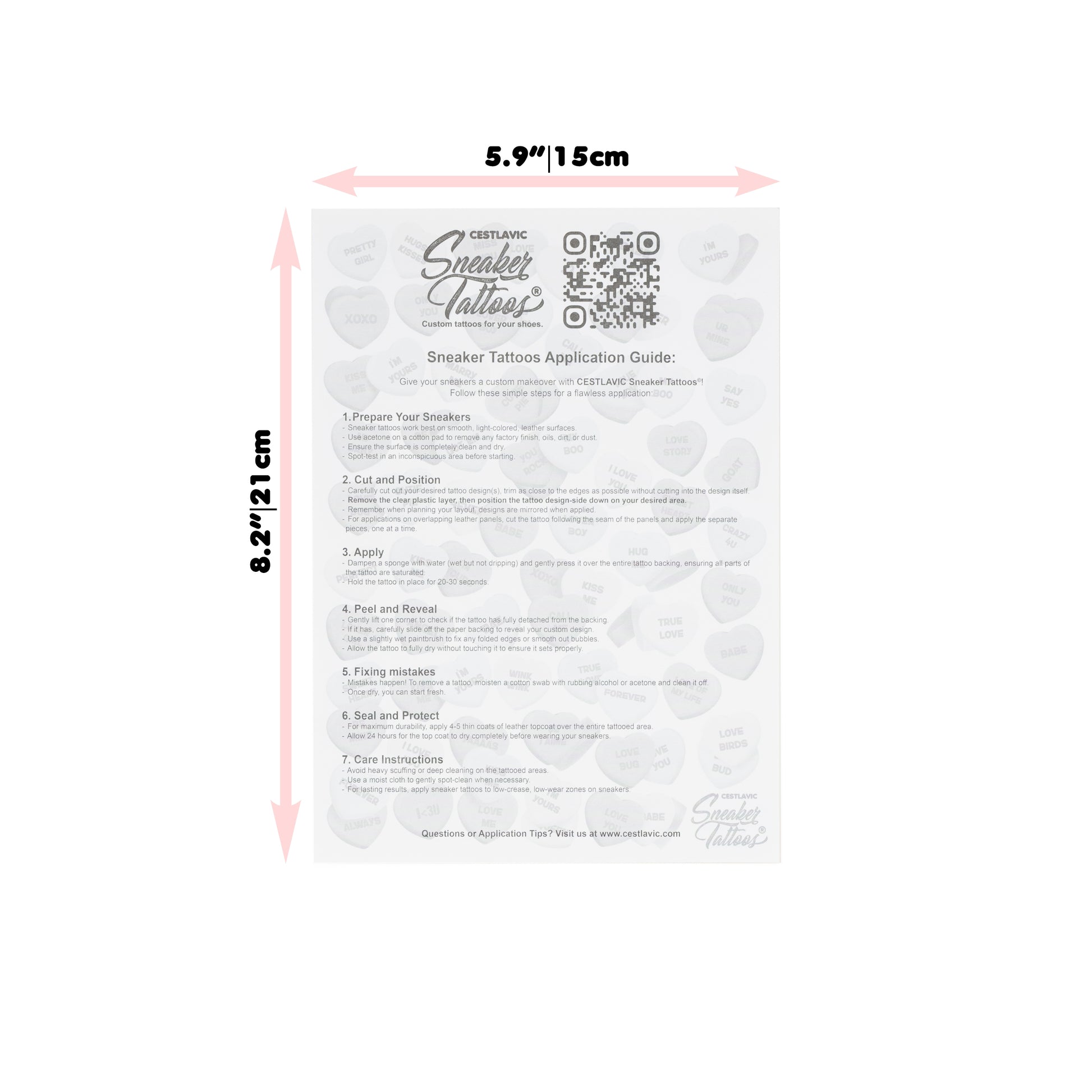 Easy Application & Removal: Instantly add flair to any shoe surface with our simple, peel-and-apply tattoos. Ready for a change? They come off just as smoothly—no residue, no regrets.