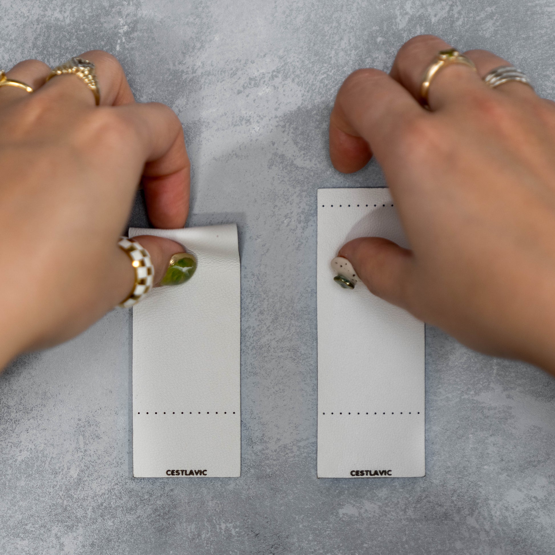 Transform your sneakers with custom tongue tags using this all-in-one kit! Each set includes everything you need to upgrade standard tags with your own one-of-a-kind leather ones: